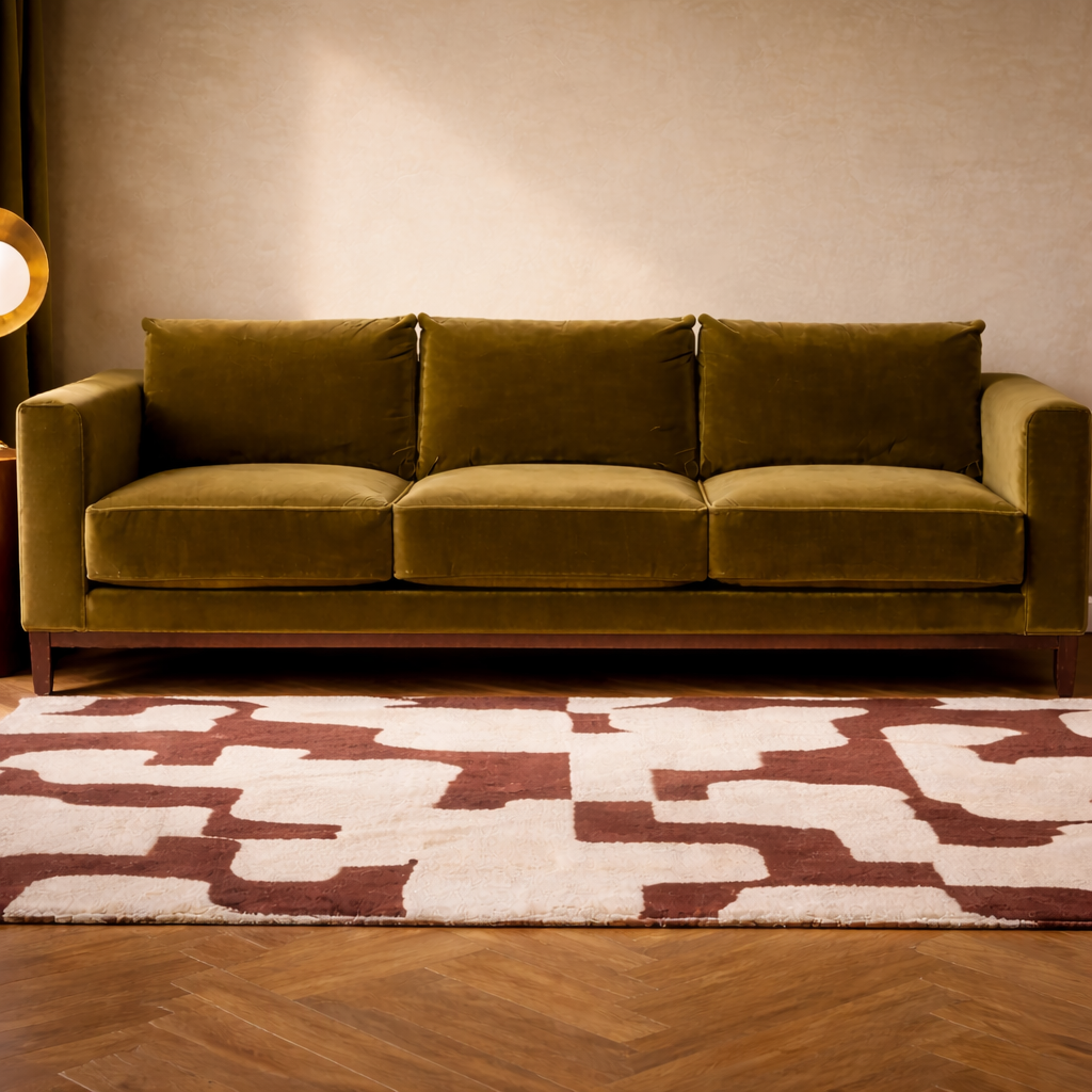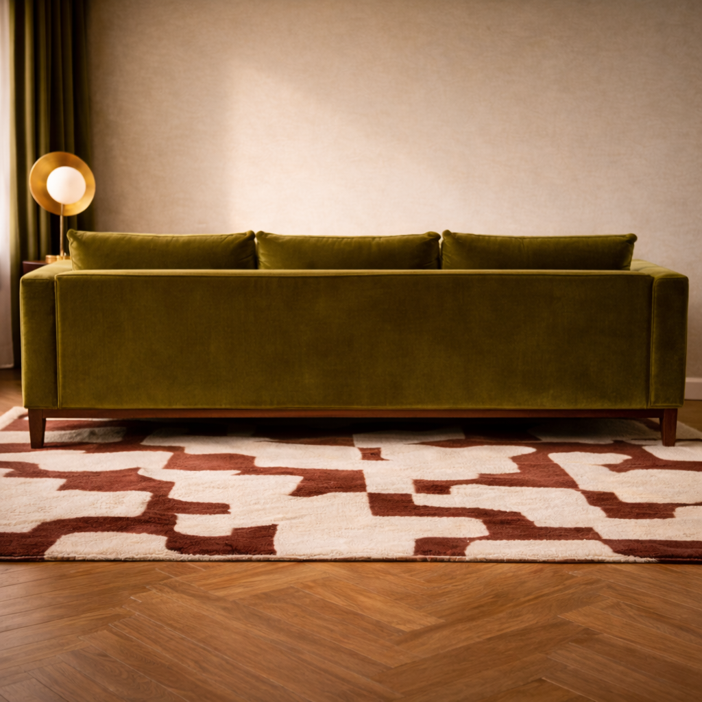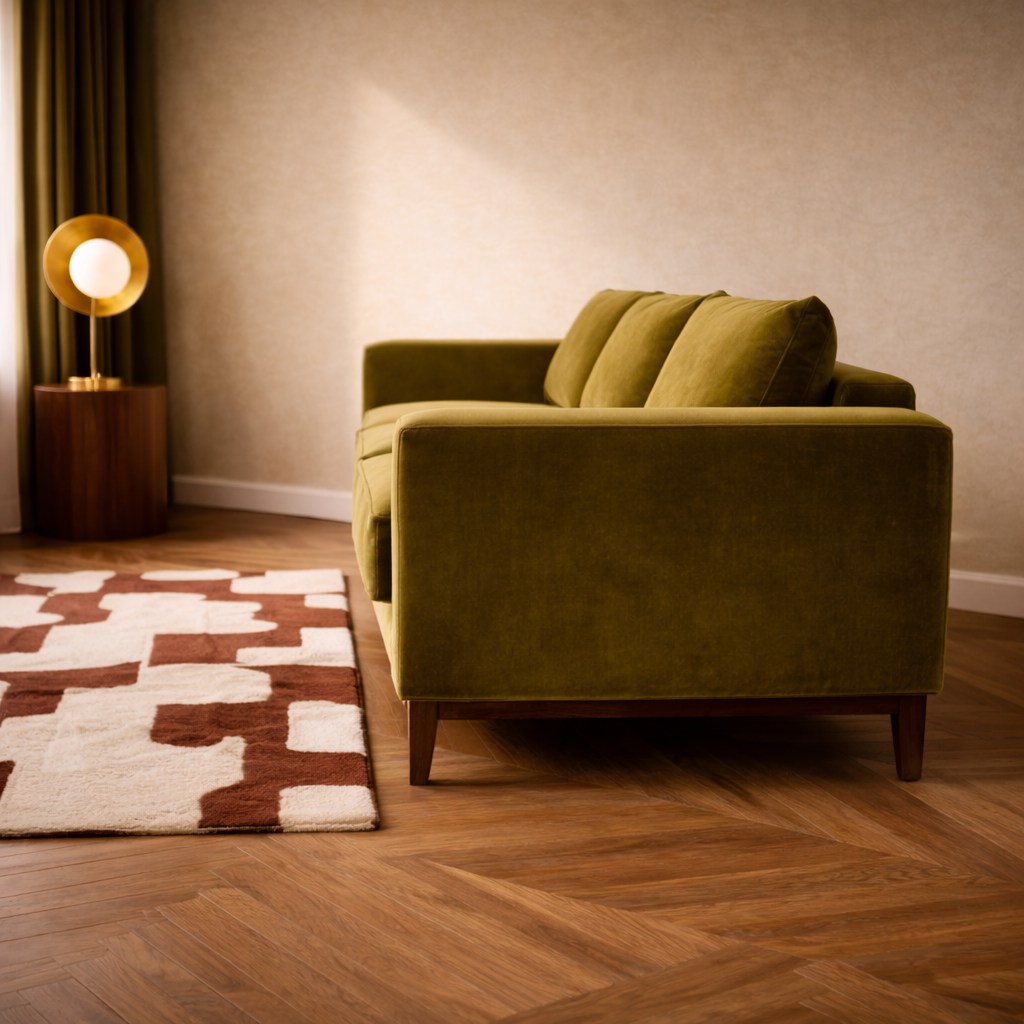Son velours vert olive intense capte la lumière et installe une atmosphère feutrée, élégante et résolument affirmée.