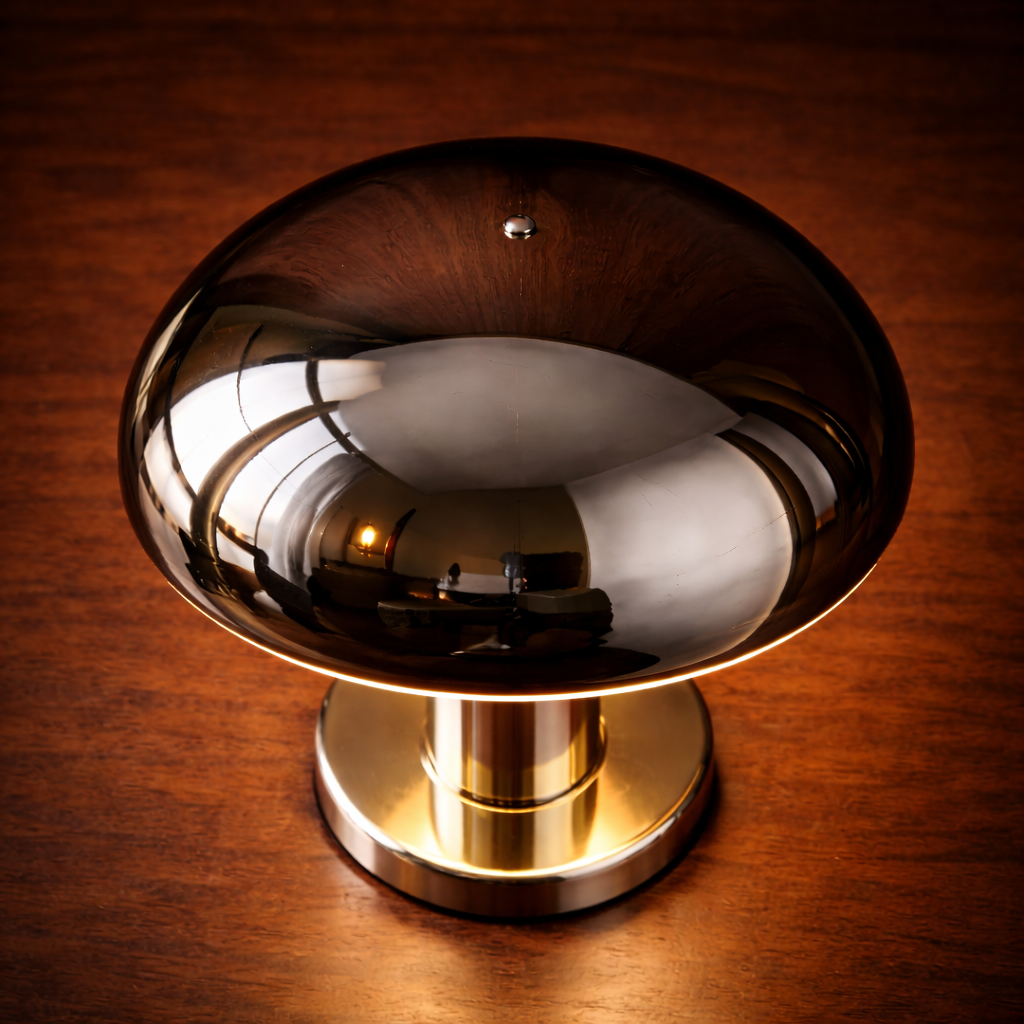 Son dôme fumé et sa base chromée créent un jeu de reflets subtil, diffusant une lumière douce et enveloppante.