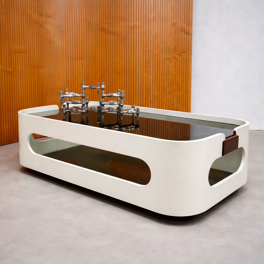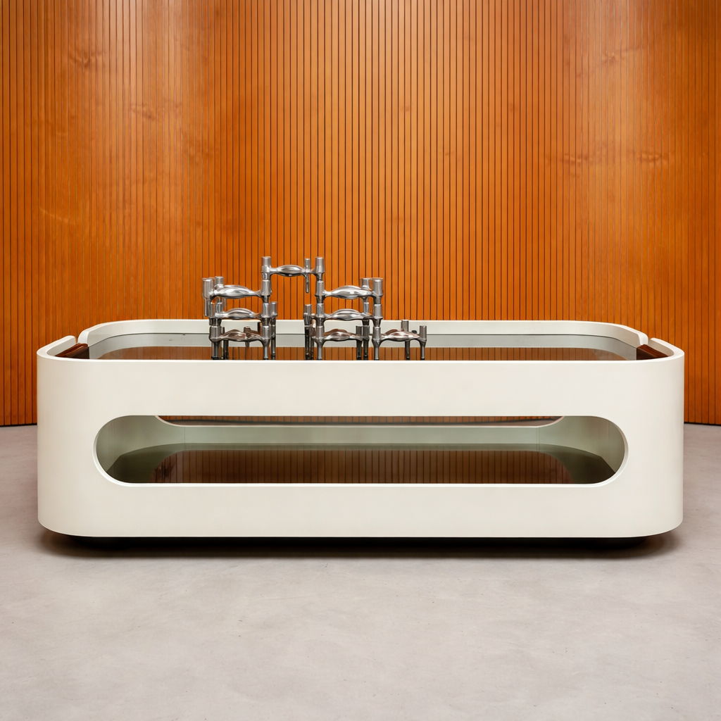 Ses lignes arrondies et son volume monolithique évoquent le design radical des années 70, entre minimalisme et sculpture fonctionnelle.